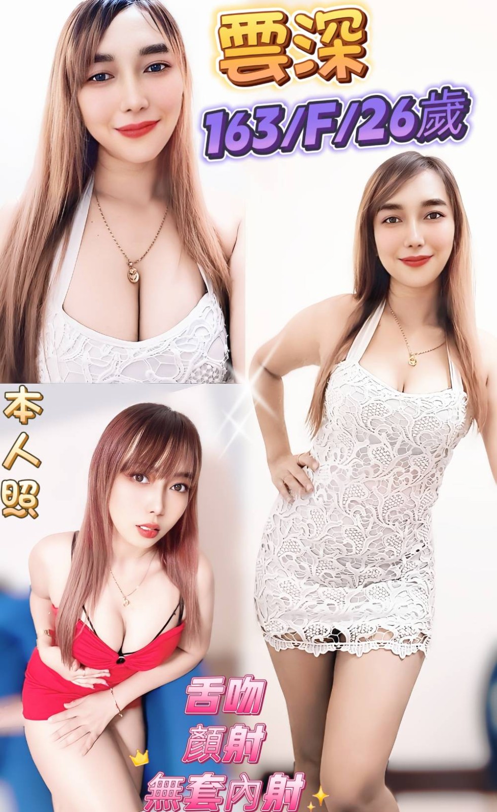 無套吹/戴套做/前後澡/品鮑/69/舔蛋/奶炮/胸推/屁推/按摩/親嘴/舌吻