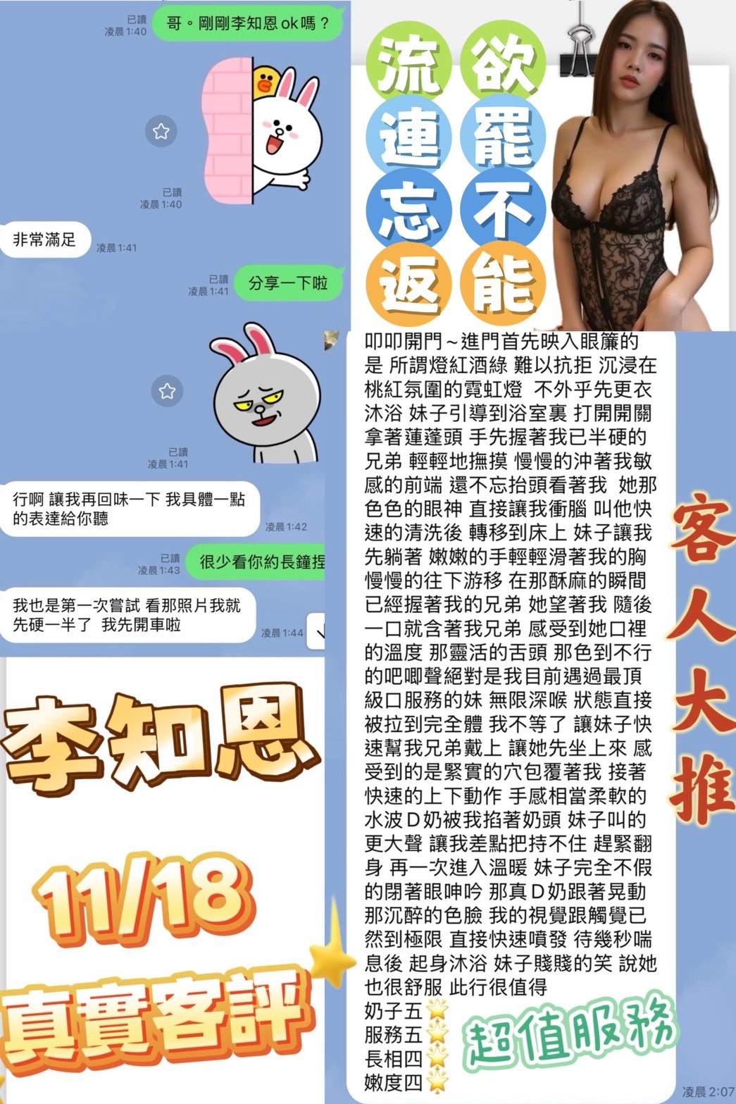 (→)無套吹(・)共浴(・)親嘴(・)LG(・)品鮑(・)69(・)奶炮(・)胸推(・)屁推(・)按摩(・)毒龍(・)顏射(・)自慰秀