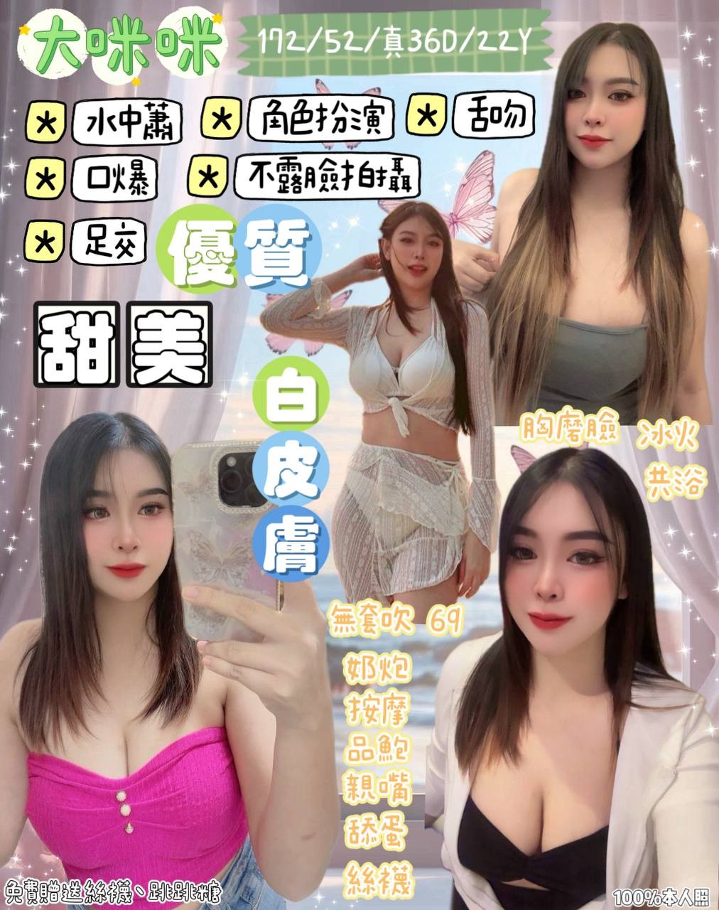 無套吹/奶泡/按摩/品鮑/69/親嘴/舔蛋/共浴/高跟鞋/胸膜臉/絲襪/🉑️水中蕭/🉑️深喉嚨/🉑️自慰秀/🉑️舌吻/🉑️角色扮演/🉑️足交/🉑️雙飛